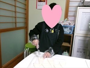 自分で作った入れ物に入れて「はい、どうぞ~」
