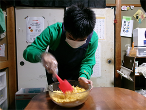 先ほど計量したバターとマシュマロをレンジで温めて混ぜていきます🥣