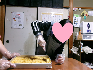 少し冷ましたらマシュマロが固まってくるので、切り分けていきましょう🎵