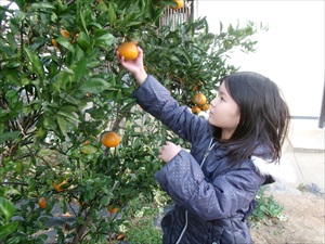 今年のみかんは少し大きめ、あとでみんなで食べようね。