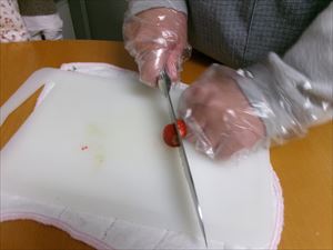 いちごやキウイをカットします。