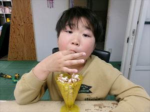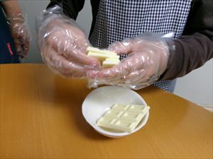 チョコレートを溶かしたら、ポップコーンに絡めます。