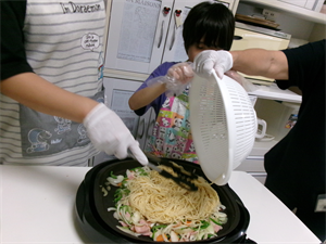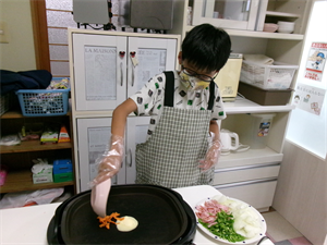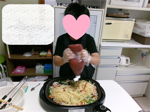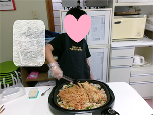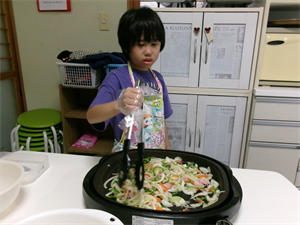 ホットプレートで炒めていきます(^-^)