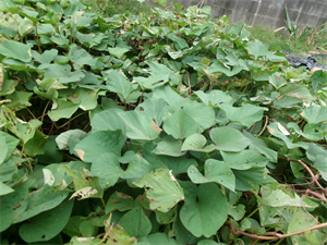 6月にみんなで植えたさつまいもの苗が成長して、大きな葉をたくさんつけてくれました。