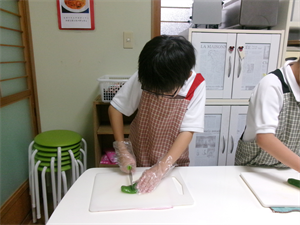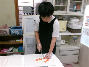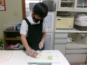 まずは、ピーマンとにんじん、ベーコン、どりーむで収穫したたまねぎを切っていきます(*^^*)