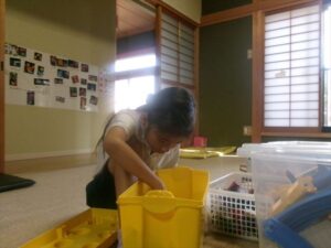 半分に切った春巻きの皮に、ハム・チーズを乗せ、くるくるっと巻きます(^^)