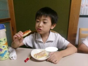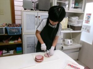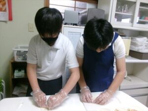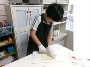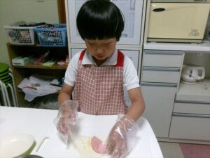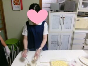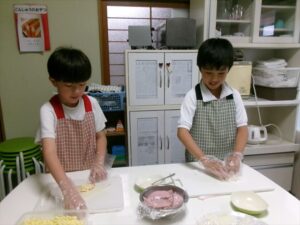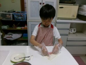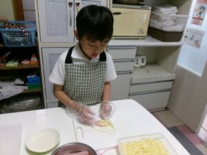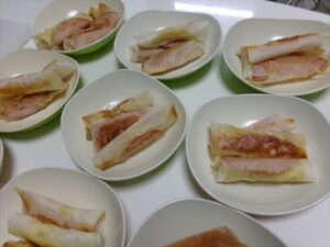 春巻きの皮にハム・チーズを乗せ、くるくるっと巻きます。