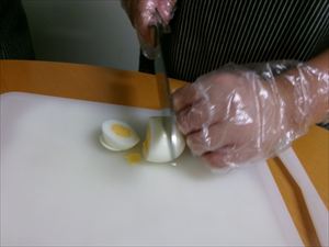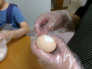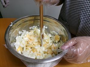 まずはゆで卵の殻を剥いて、切り刻み🔪、マヨネーズで和えるとしましょう!