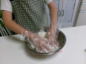 ボウルに入れ、耳たぶくらいに固さになるまで、よく捏ねましょう!