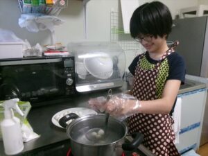 お鍋で湯がき、冷水に取り、水気を切ります。
