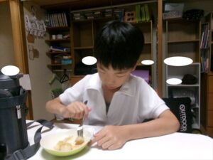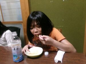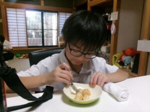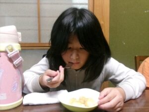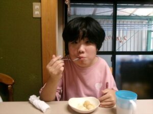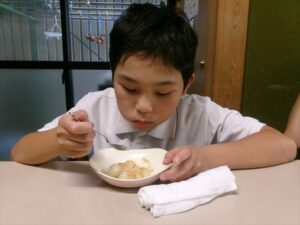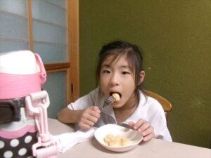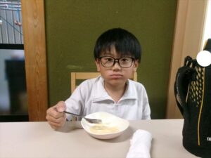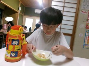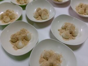 お皿に盛り付け、きな粉砂糖をかけて、出来上がり(‘◇’)ゞ