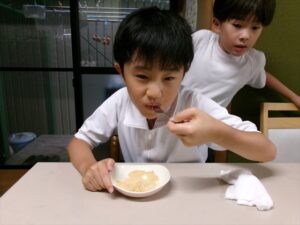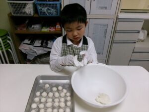 次はおやつ作りに取り組んでいきます!今週のおやつは「お月見団子」です🌕🍡