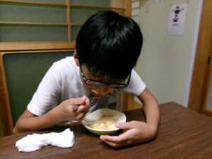 のどに詰まらないように、時間をかけてゆっくり・しっかり噛んで食べていました💮