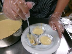 できた生地をカップに入れて