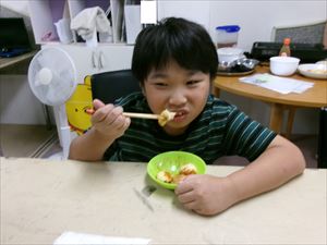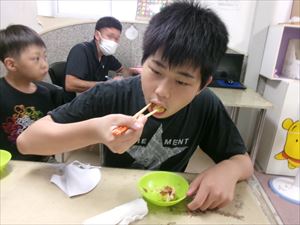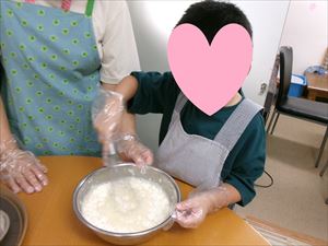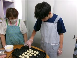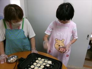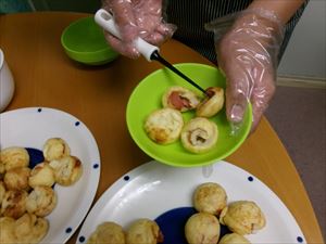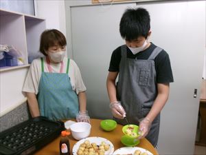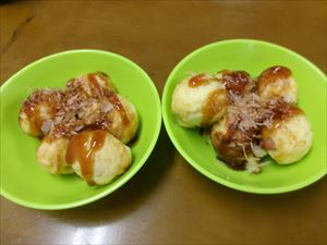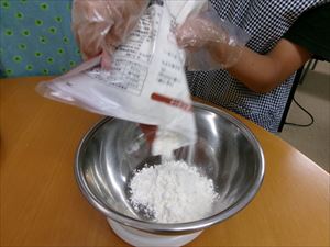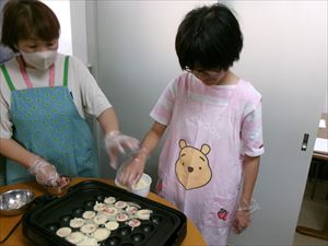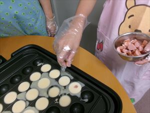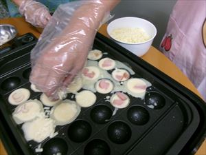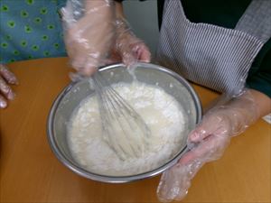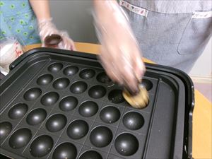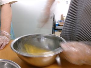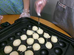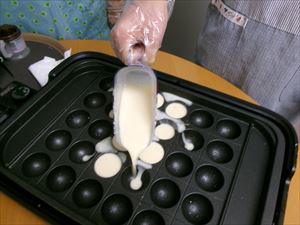 たこ焼き粉や水、卵などを混ぜ合わせ生地を作ります。