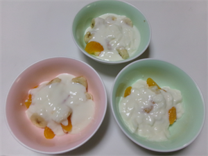 今日のおやつは、『フルーツヨーグルト』(^^♪