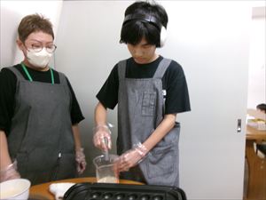 たこ焼き粉や水、卵などを混ぜ合わせ生地を作ります。