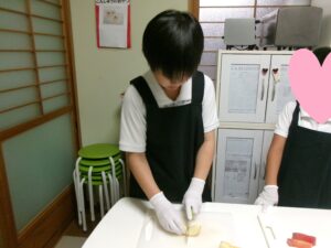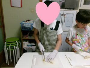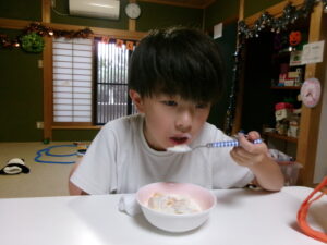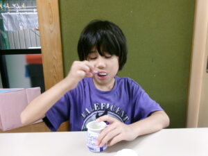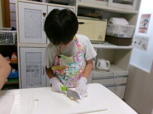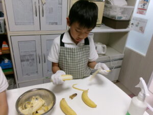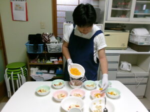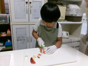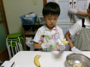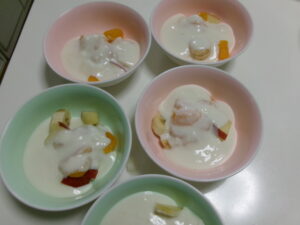 次はおやつ作りです✨今日のおやつは「フルーツヨーグルト」です🍎🍌🍊