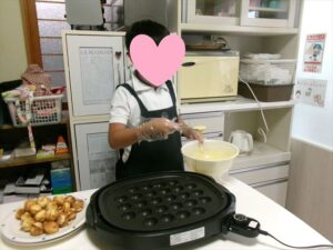 おやつは【たこ焼き器でアメリカンドック】です☺