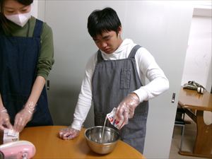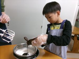 ではお誕生会に向けて、皆でチョコレートケーキを作ります🎂