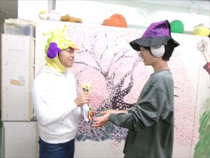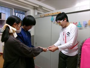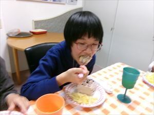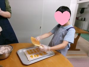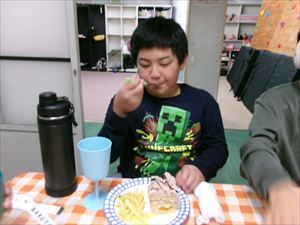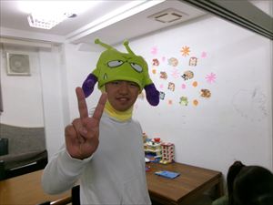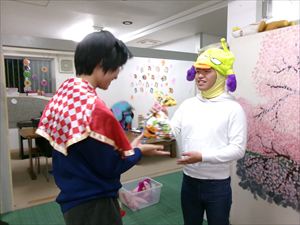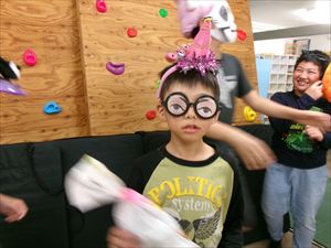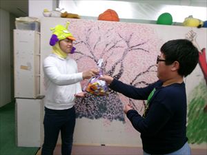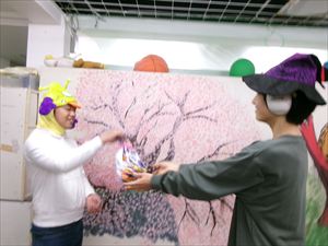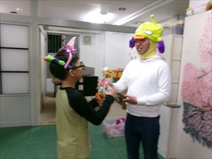 年長者、Tくんに、「トリック・オア・トリート!」でおやつをもらいます(^^♪