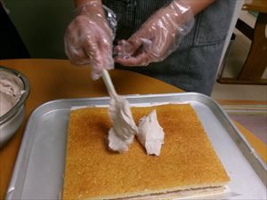 クリームが出来たらスポンジ台に塗っていきます~