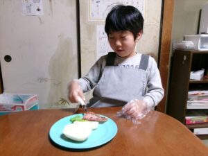 では、今週のおやつ【ハロウィンミニバーガー】を作っていきましょう~👨🍳👩🍳