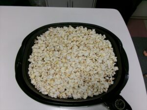 ホットプレートに油を引き、ポップコーンの種を入れ、蓋をして、ポンポンっと弾けてきます!!