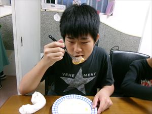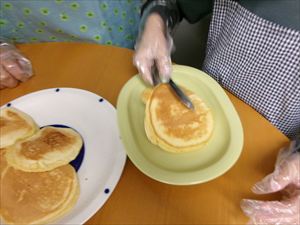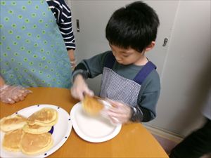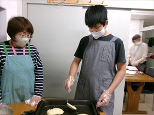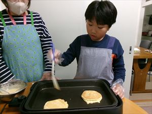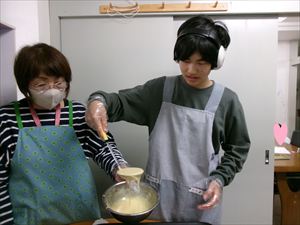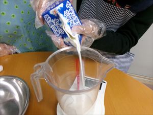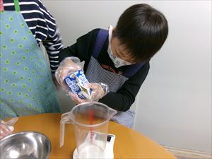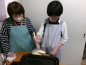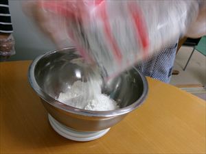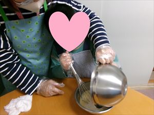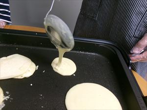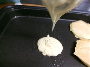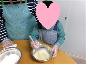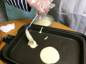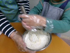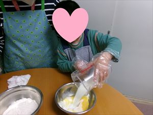卵やホットケーキミックス、牛乳を混ぜ生地を作ります。