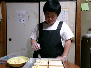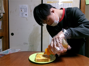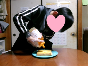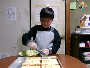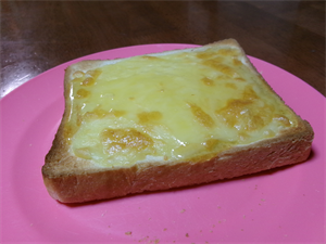 トースターで焼いていき、チーズが溶けたらはちみつをかけていきましょう🍯