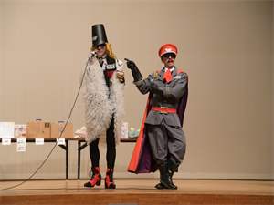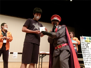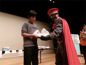 なんと、ご当地ヒーローのナライガーの悪役、ブラックス将軍とプラ男爵も来てくれました。