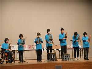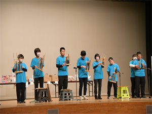 インドネシアの伝統楽器アンクルンの心地よい音色とコンブリオさんのチームワークで
