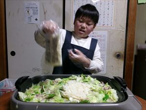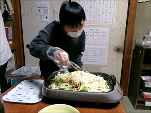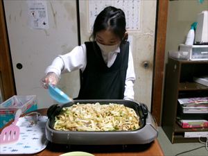 次にホットプレートでお肉をしっかり焼いた後野菜を入れて炒めたら
