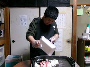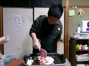 次に熱しておいたホットプレートでお肉をよく焼き、
