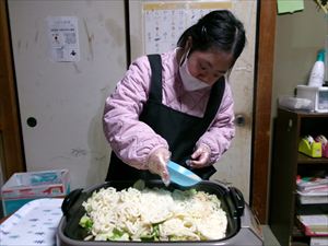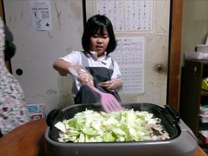始めに野菜を切り、しょうゆとほんだしの計量をします!