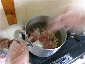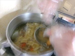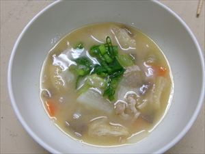 豚肉やカットした野菜などを炒めて、だし汁を入れ煮込み、