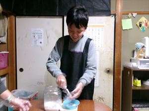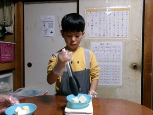 まずは、ホットケーキミックス、砂糖、バターの計量をします✋