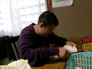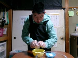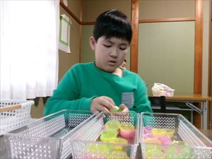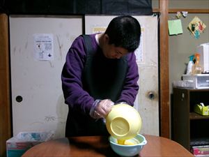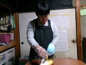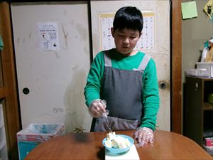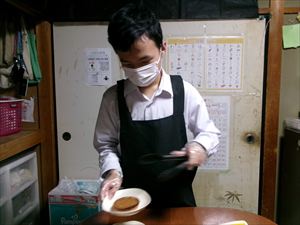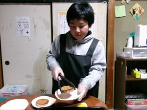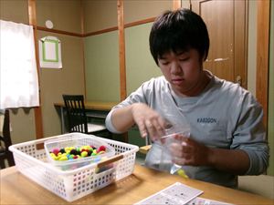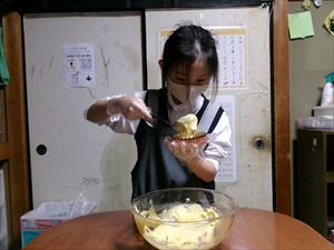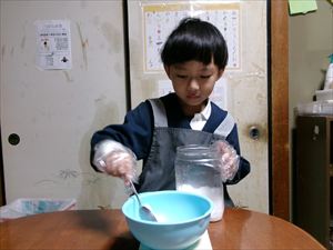 まずは、ホットケーキミックス、砂糖、バターの計量をします!