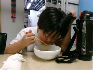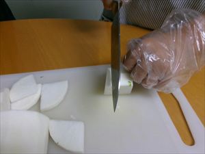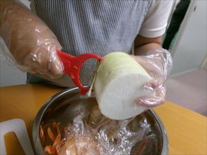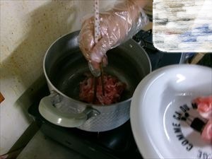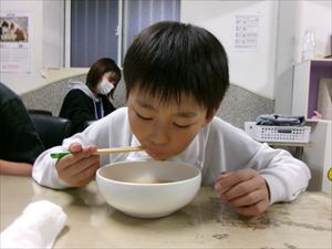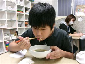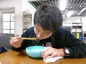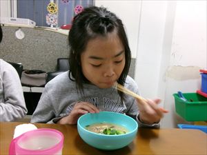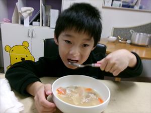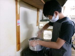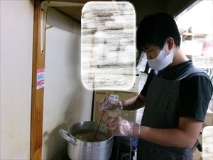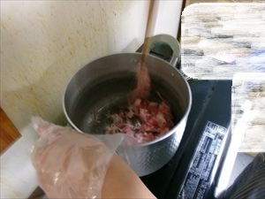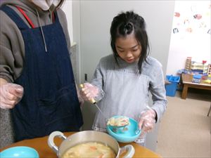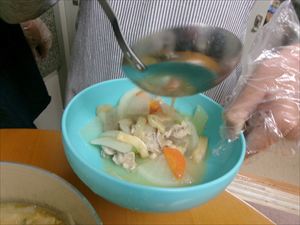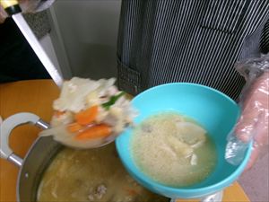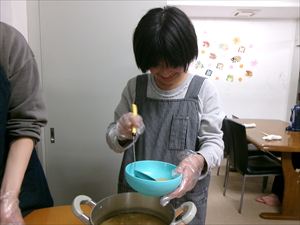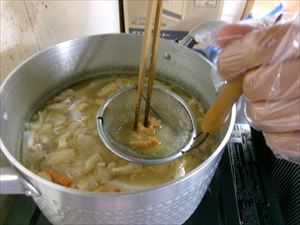 最後に出汁を入れて、みそを溶いたら豚汁の完成です!