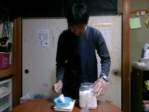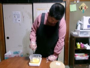 最初に、バター、砂糖、ホットケーキミックスの計量からお願いします!