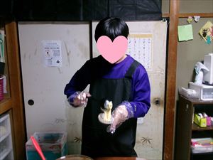 生地が出来たら、カップに少しずつ入れていきましょう。