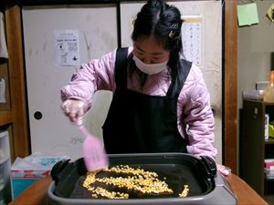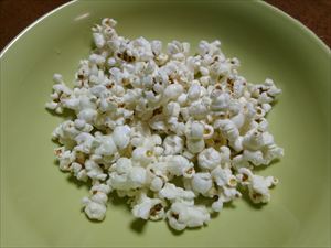 仕上げに塩で味付けをしてポップコーンが弾けたらお皿に取り分けましょう(≧▽≦)