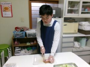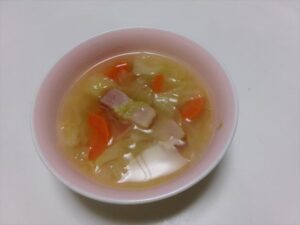 キャベツ・にんじん・玉ねぎ・ベーコンを切ります。