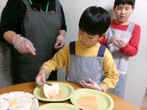 おやつのたませんを作りましょう🎵🎵目玉焼きを作ります。