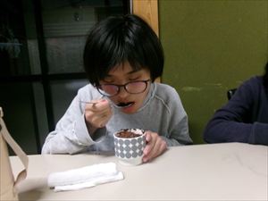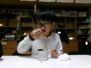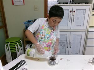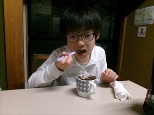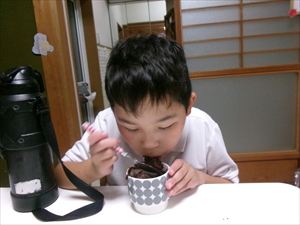 その後、砂糖大さじ1・ココア大さじ1・サラダ油大さじ1・牛乳大さじ3・チョコレートを入れてよくかき混ぜます!