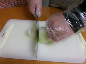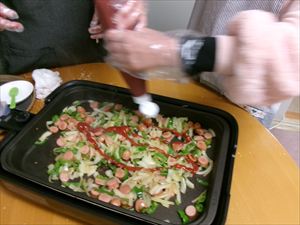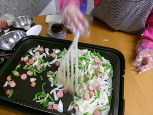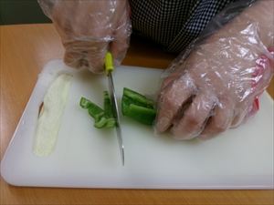 ウインナーや玉ねぎ、ピーマンをカットし、