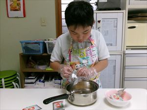 次はおやつ作りです!今週のおやつは「どりーむラーメン」です🍜