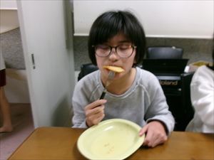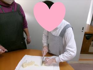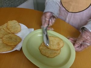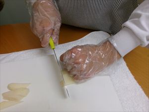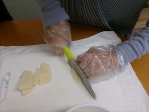皮をむいたじゃがいもを包丁で小さく切っていきます!