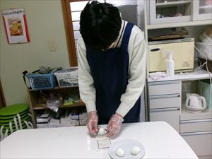 ゆで卵の殻をむいて、スライサー専用器で卵を4等分にしていきます🥚