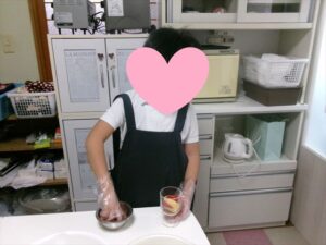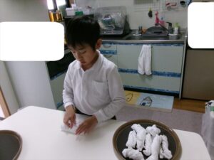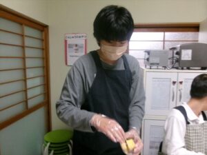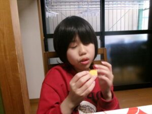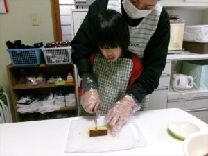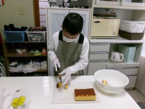 カステラを切ります。